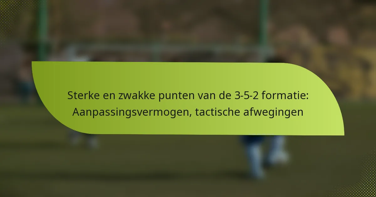 De 3-5-2 formatie is een tactische opstelling in het voetbal die de nadruk legt op een sterke aanwezigheid op het middenveld, terwijl er een solide defensieve lijn wordt behouden. Om deze formatie effectief te counteren, moeten teams de zwaktes ervan identificeren en strategische reacties toepassen, waarbij ze alternatieve formaties en spelersposities gebruiken om de balans te verstoren en gaten te exploiteren. Het begrijpen van de intricaties van de 3-5-2 is cruciaal voor het ontwikkelen van effectieve tegenstrategieën die de loop van een wedstrijd kunnen veranderen. Key sections in the article: Toggle Wat is de 3-5-2 formatie en hoe functioneert deze?…